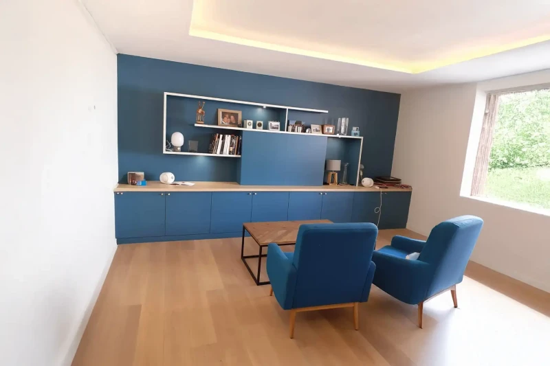 La création de rangements est un élément clé de notre approche. Nous identifions tous les espaces peu utilisés (sous les escaliers, dans les combles, en hauteur) pour y concevoir des systèmes de rangement sur mesure. Nous pouvons par exemple utiliser l'épaisseur des murs pour intégrer des niches ou des placards encastrés. Notre offre comprend des aménagements à double usage comme des estrades avec rangements ou des cloisons-bibliothèques qui exploitent chaque centimètre disponible. Nous intégrons cette réflexion dès le début de la conception pour vous offrir un résultat à la fois esthétique et parfaitement fonctionnel.